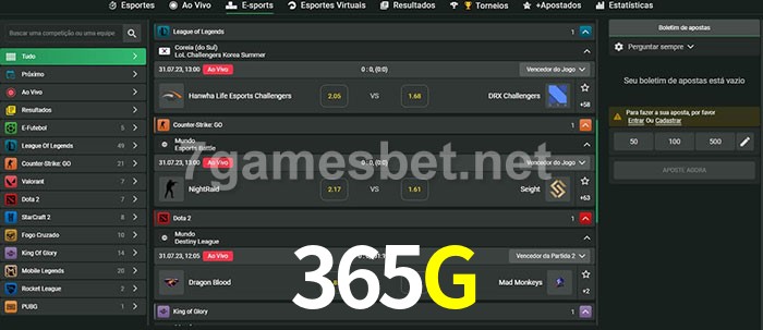 O 365G oferece uma grande seleção de opções de apostas em e-sports com probabilidades competitivas